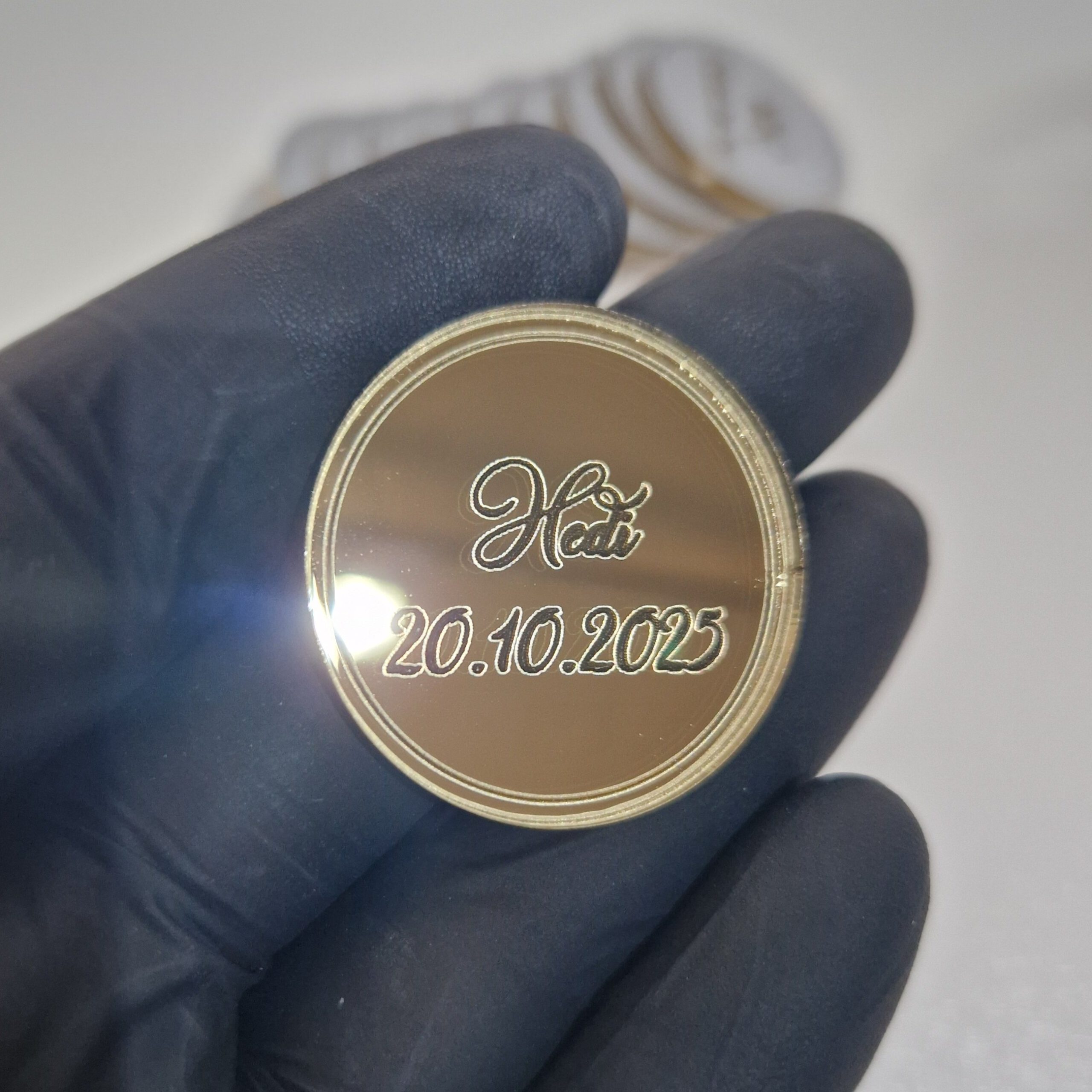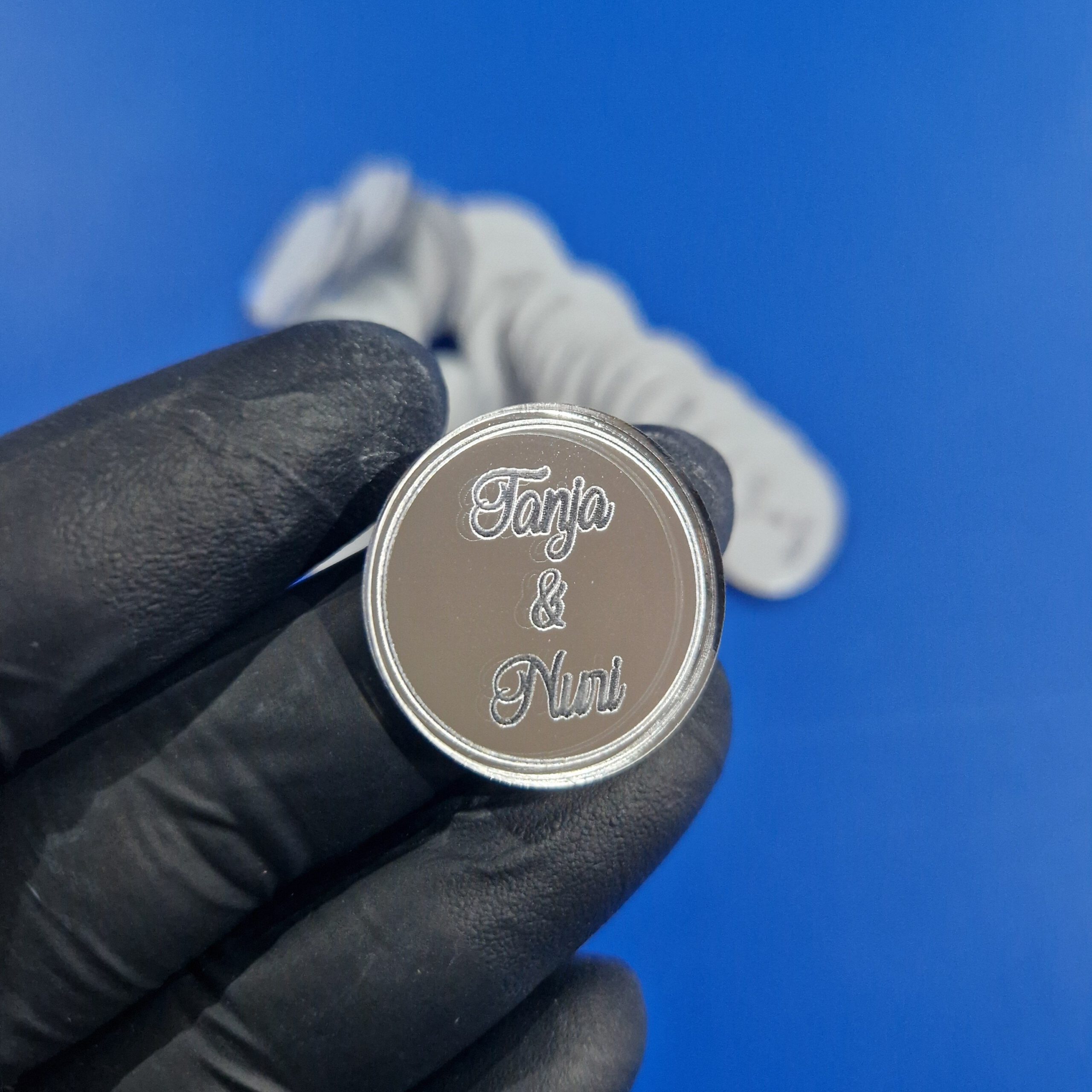 - Material: Spiegelgoldacryl oder Spiegelsilberacryl mit Gravur